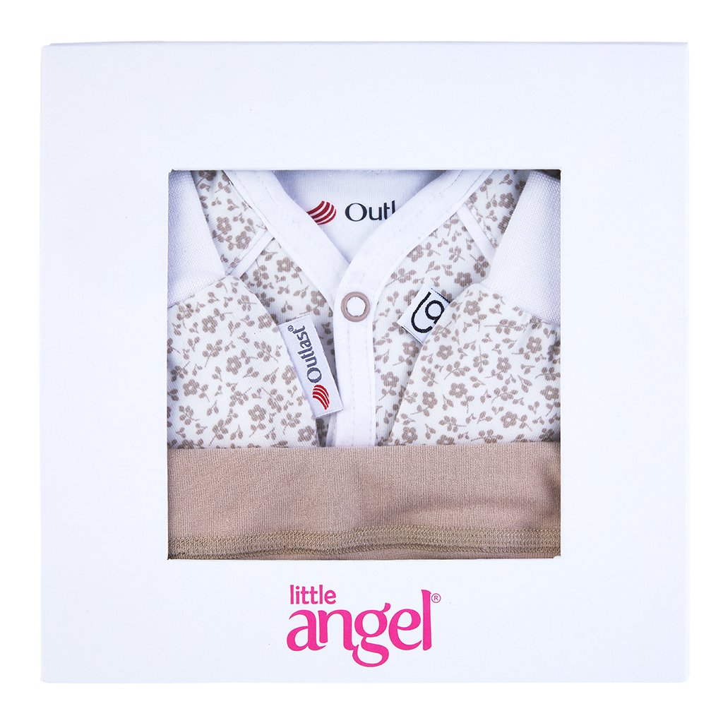 Baby Erstlings-Set 5 teilig Outlast® - Weiß Hellbraun Blüten/Latte