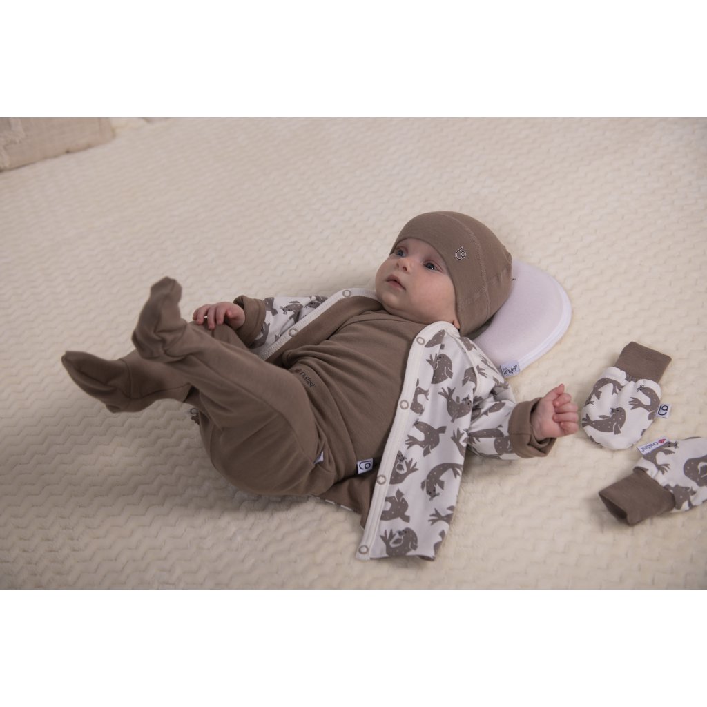Baby Erstlings-Set BIO 5 teilig Outlast® - Weiß Braune Hundsrobbe/Nuss
