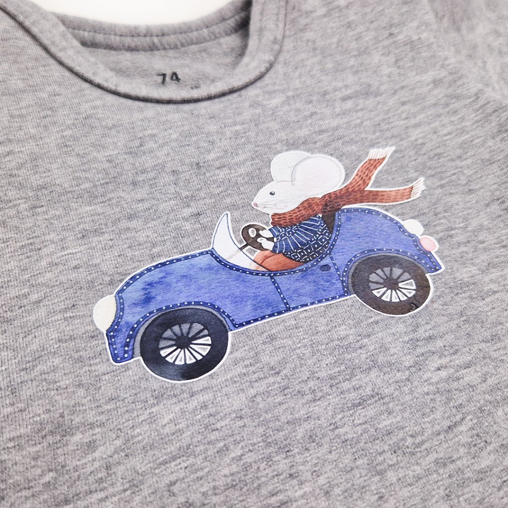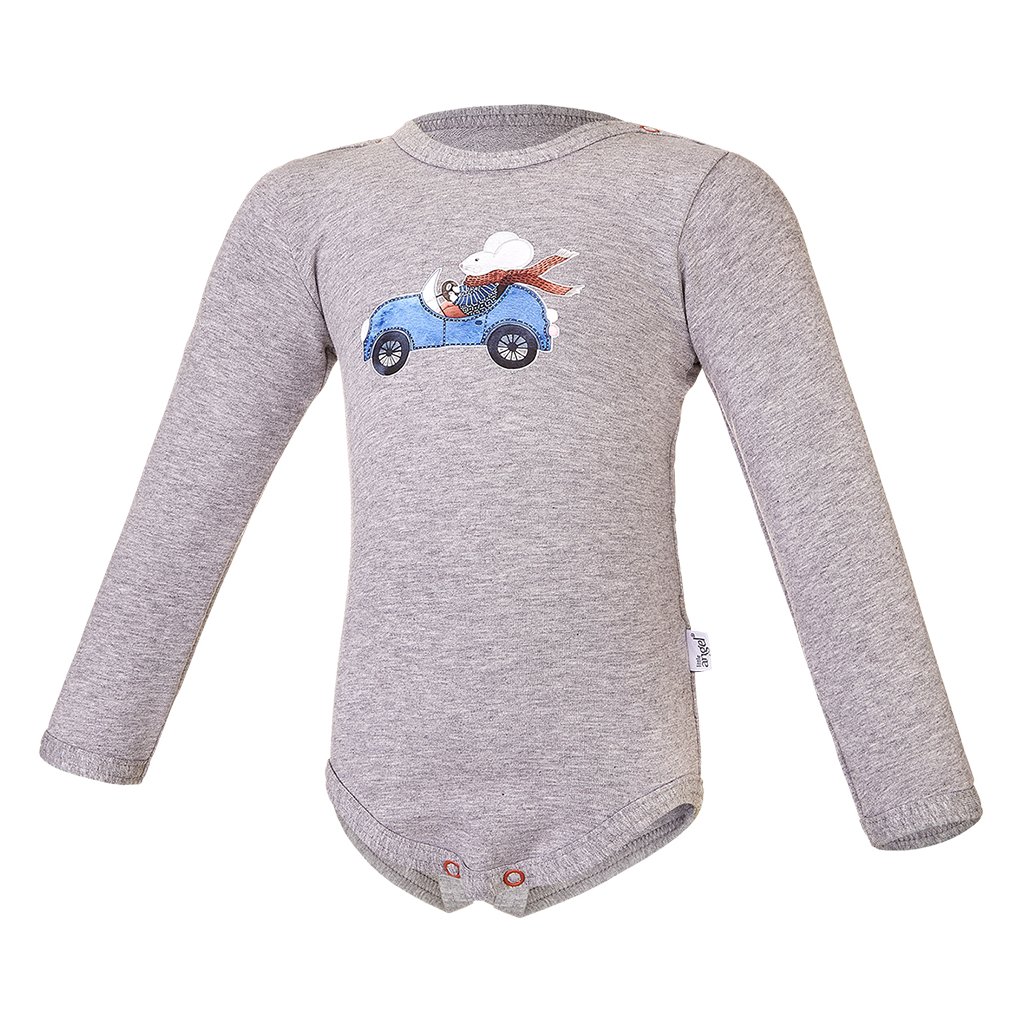 Babybody lange Ärmel Motiv Outlast® - grau meliert