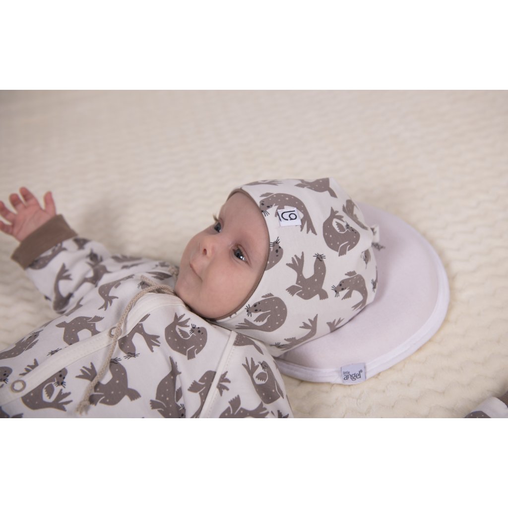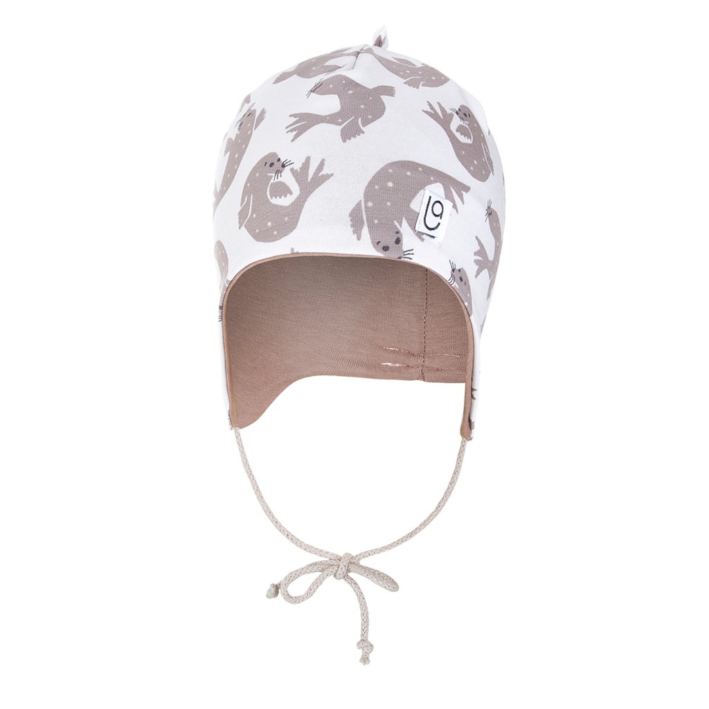 Babymütze zum Binden BIO gefüttert Outlast® - Weiß Braune Hundsrobbe/Nuss