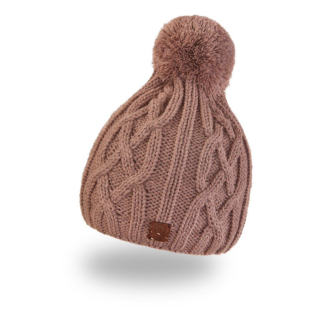 - Weiche gestrickte Beanie Bommelmütze mit Zopfmuster