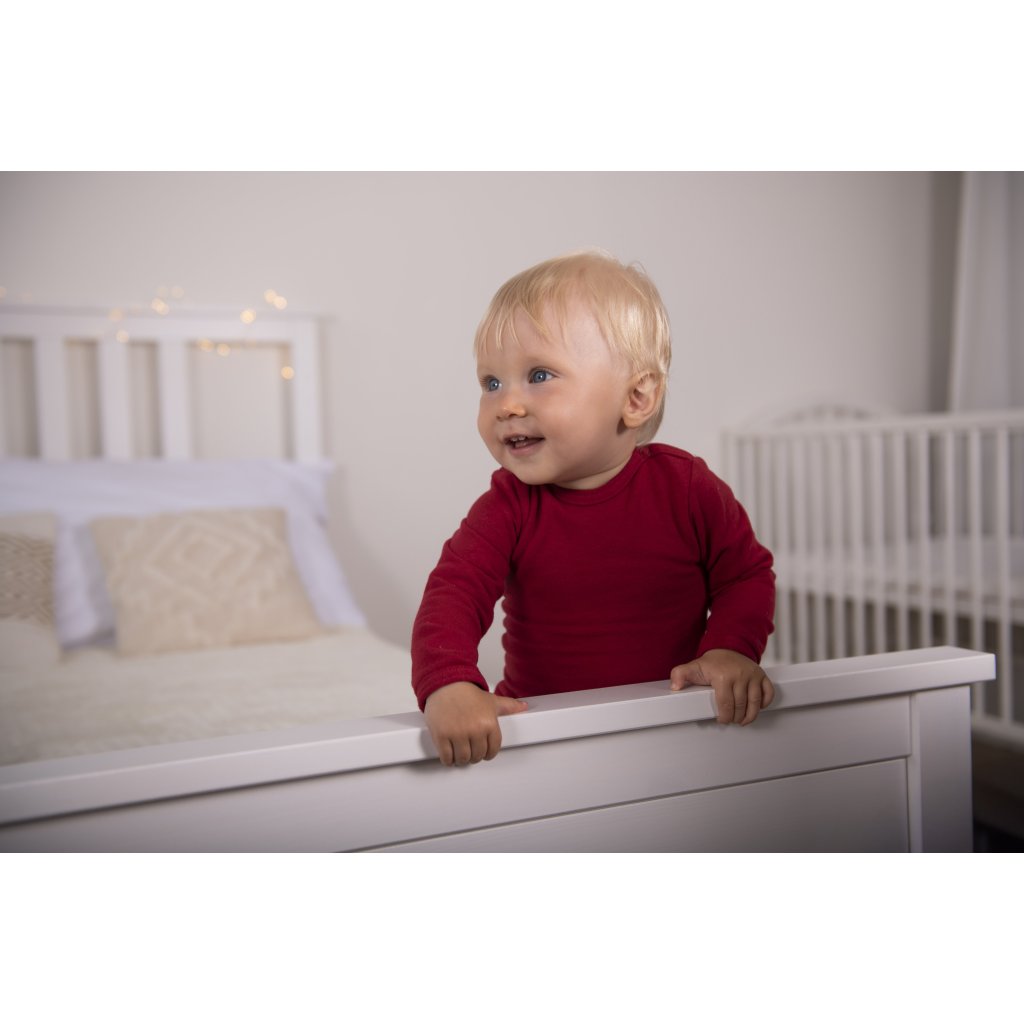Der langärmelige Outlast® Body aus dickem Strickstoff eignet sich ideal für die kühlen Monate. Er kann als wärmende Unterwäsche für draußen getragen werden oder – in Kombination mit einer Jogginghose bzw. einer Hose mit Fuß – auch bequem zu Hause. Gefertigt aus einem elastischen, angenehmen Material, passt sich der Body flexibel mehreren Größen an. Besonders praktisch: Mütter schätzen die Druckknöpfe am Hals und im Schritt, die das An- und Ausziehen erheblich erleichtern.