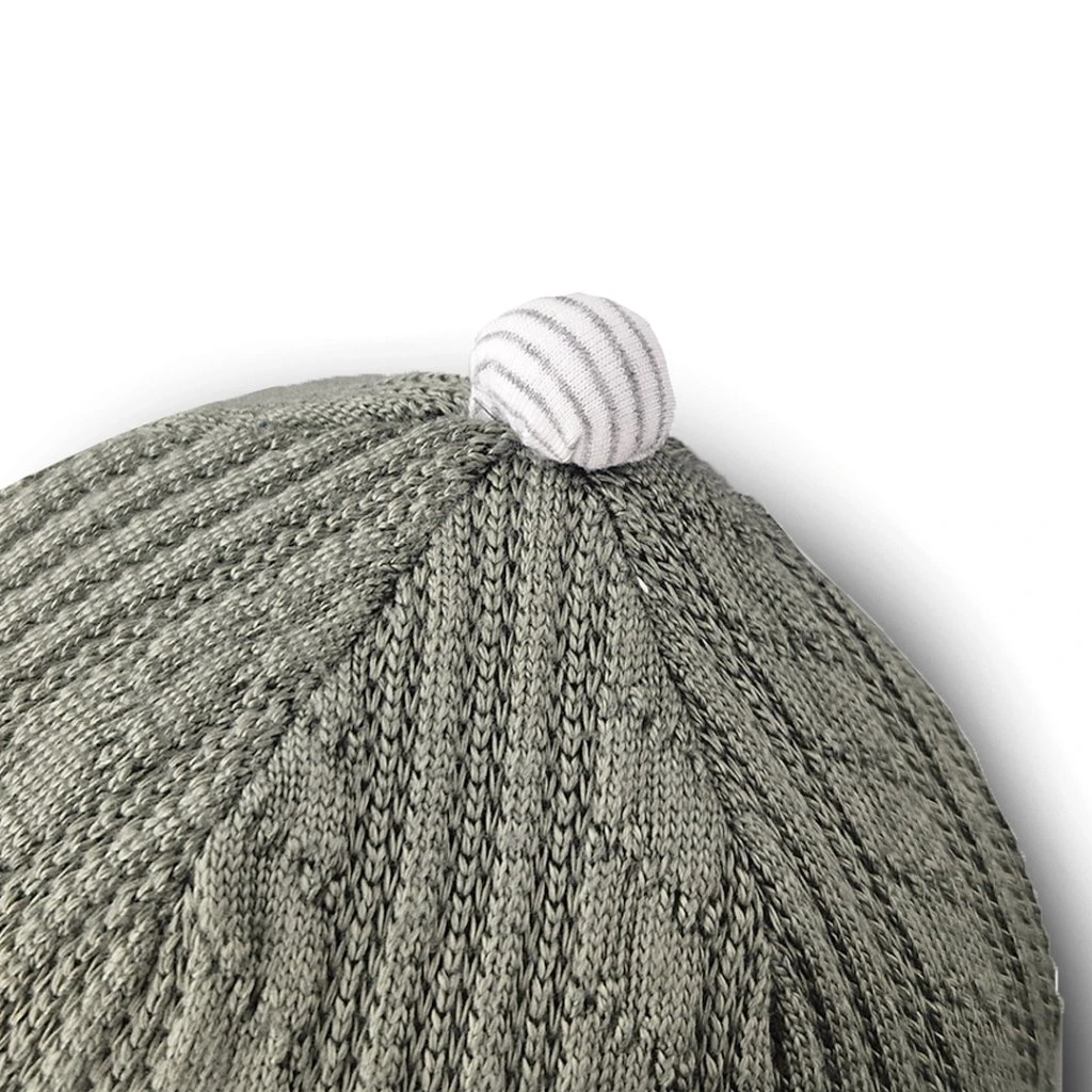 Gefütterte Bindemütze für Kinder Outlast® - Moosfarbe/Streifen Weißgrau Meliert