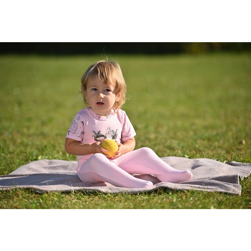 Das Material ist sehr elastisch und fühlt sich angenehm an. Darüber hinaus ist es auch für Kinder mit problematischer Haut geeignet, egal ob sie allergisch sind oder ein atopisches Ekzem haben. Es verursacht keine allergischen Reaktionen und ist resistent gegen Schimmel und Bakterien. Es verringert das Risiko von Frieseln.
