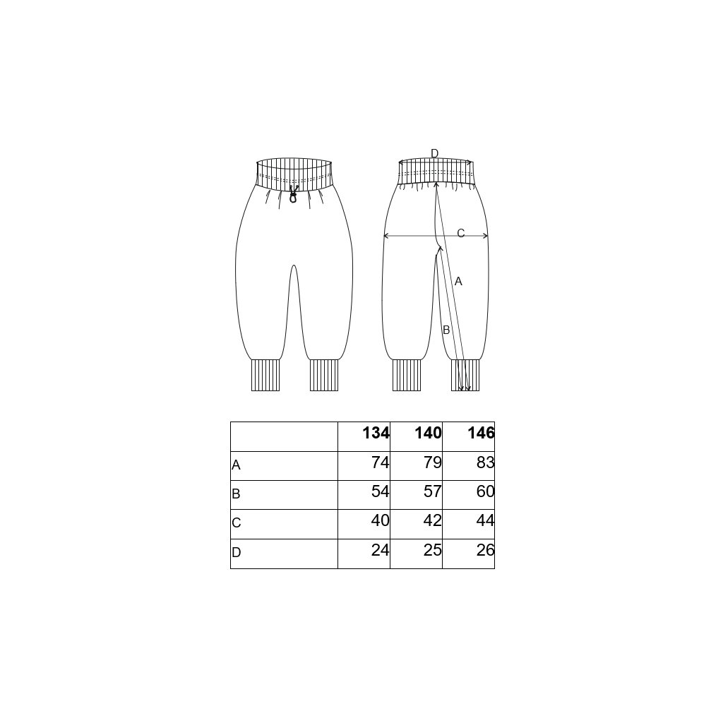 Bündchen am Bauch und am Beinabschluss wegen der Regulierung der Länge.