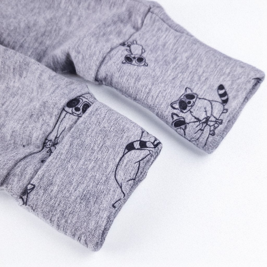 Kinderoverall lange Ärmel DRUCK Outlast® - Grau Meliert/Grau Meliert Waschbären