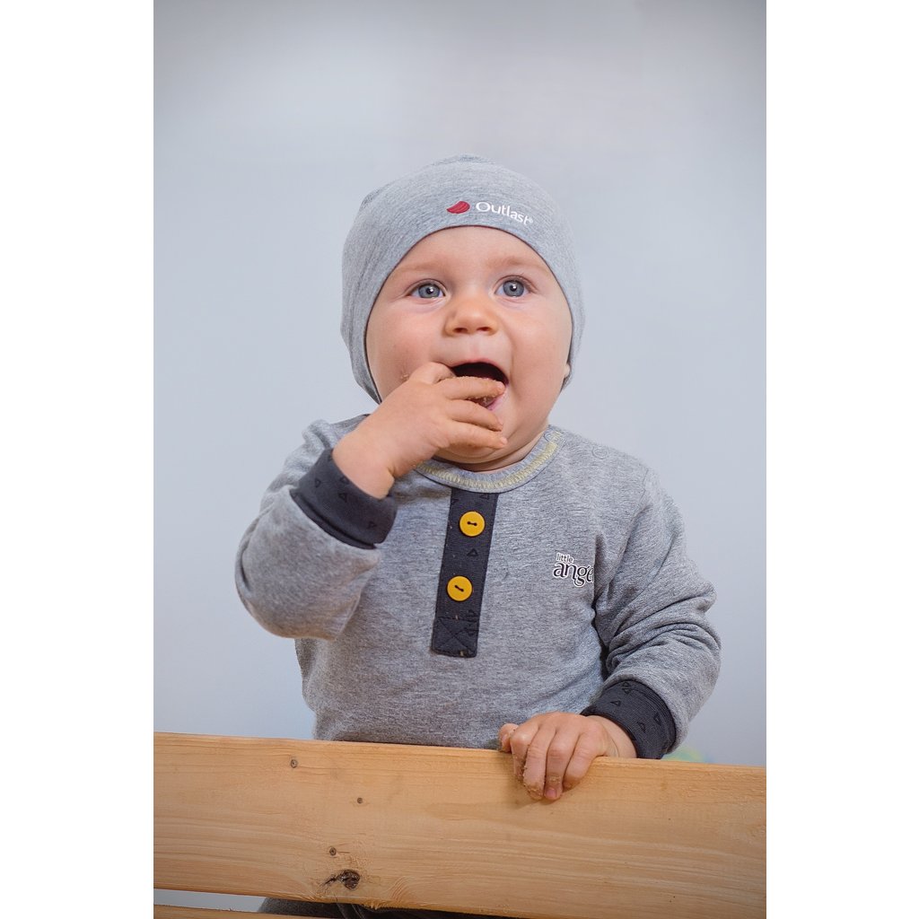 Die Pull-on - Beanie Mütze Outlast® ist aus Baumwollstrick mit einer Mischung aus thermoregulierendem Outlast®--Material hergestellt. Dieses Material kann effizient mit der Körperwärme arbeiten. Bei Erwärmung führt es die überschüssige Wärme ab, und wenn die Temperatur sinkt, gibt es die gespeicherte Wärme ab und wärmt sich wieder auf. So hat das Kind während der gesamten Tragezeit ein angenehmes Tragegefühl, ohne zu schwitzen oder zu frieren. Das Outlast®-Material ist hier in einer wärmeren Version mit Maschen vertreten. Die Mütze ist daher besonders für den Frühjahr oder Herbst verwendet werden. Die bequeme Passform passt sich jeder Kopfform an und das elastische Material sorgt dafür, dass die Mütze über mehrere Größen hinweg hält.