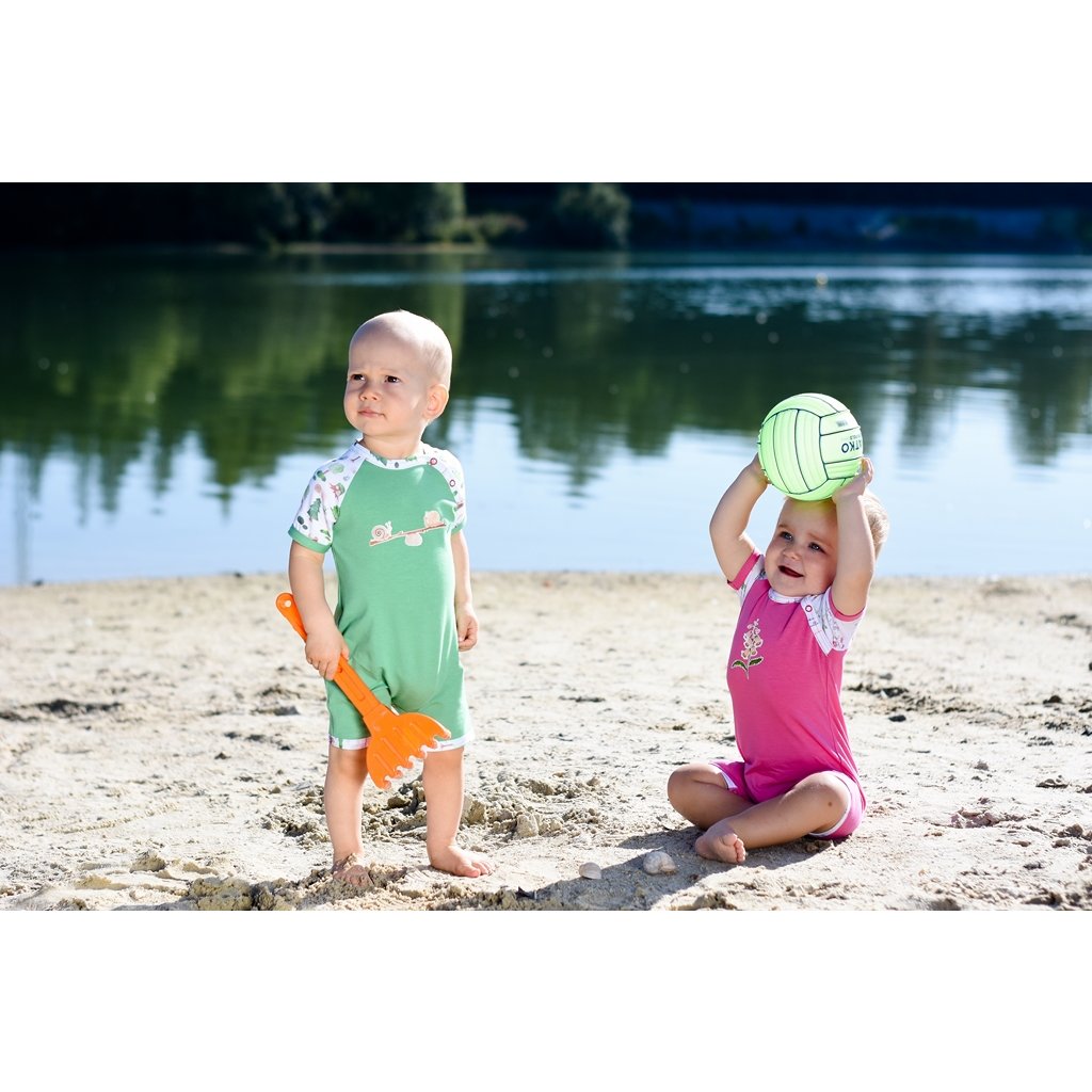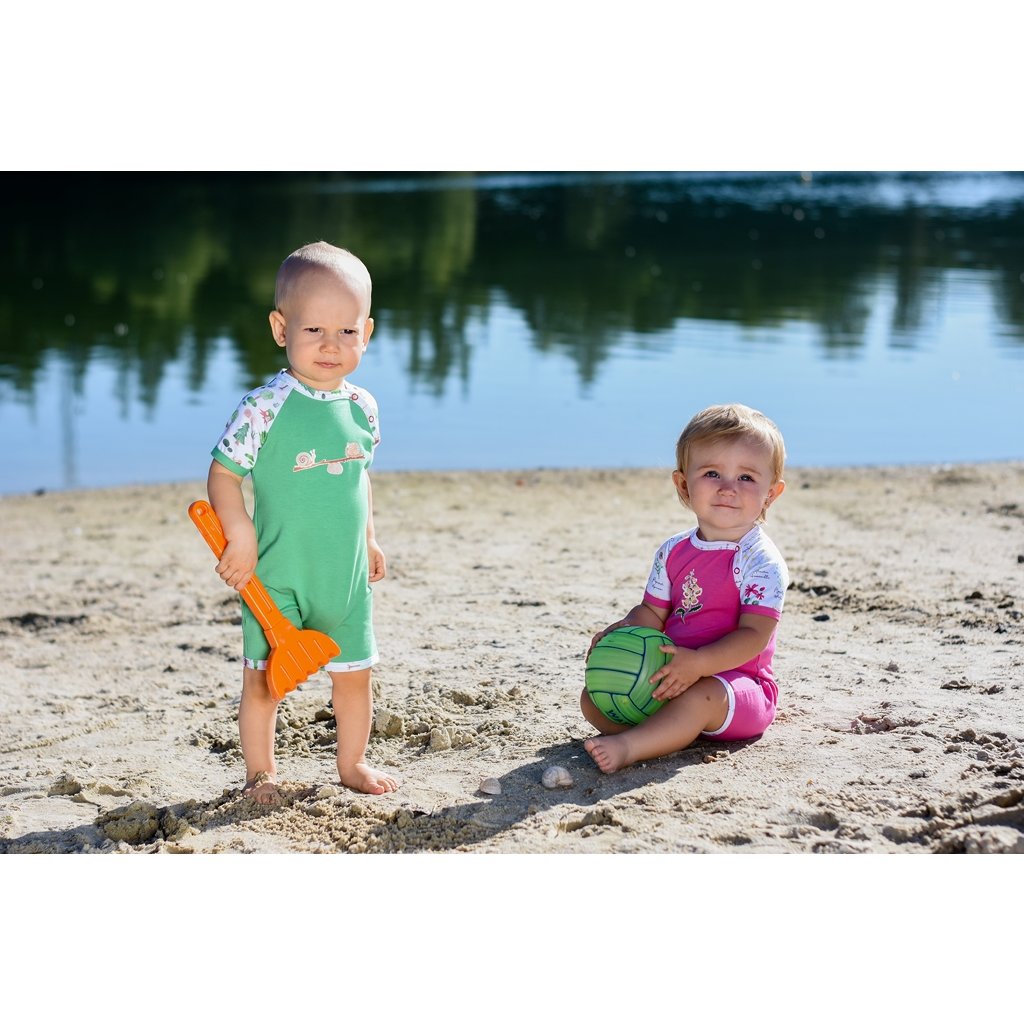 - Mit praktischen Druckknöpfen auf den Schultern und im Schritt für einfaches An- und Ausziehen