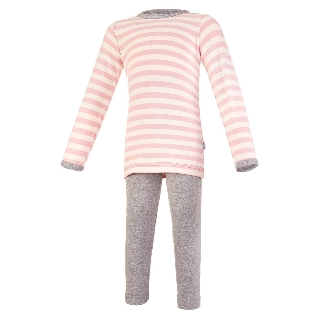 Pyjama lange Ärmel Outlast® - Streifen rosa/grau meliert