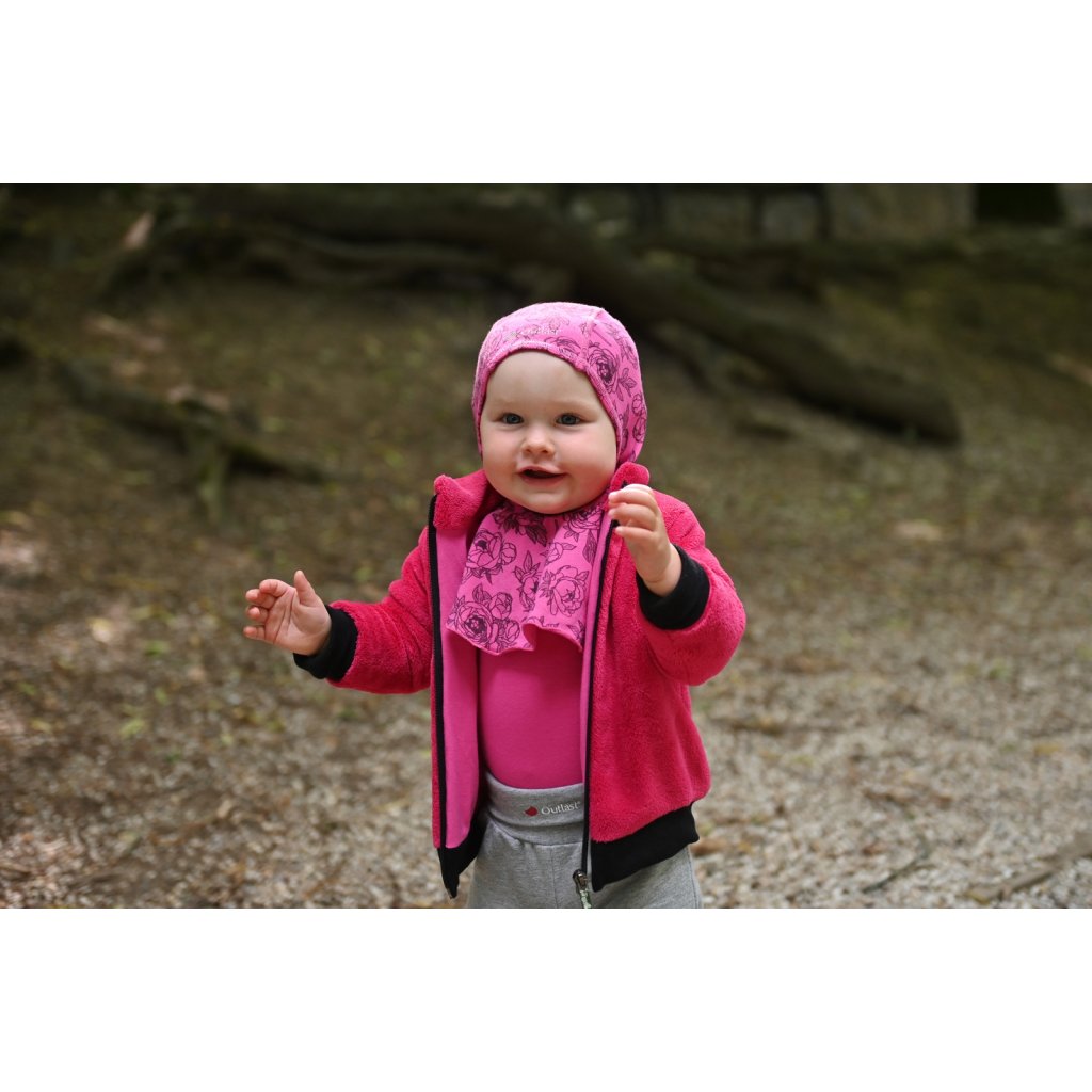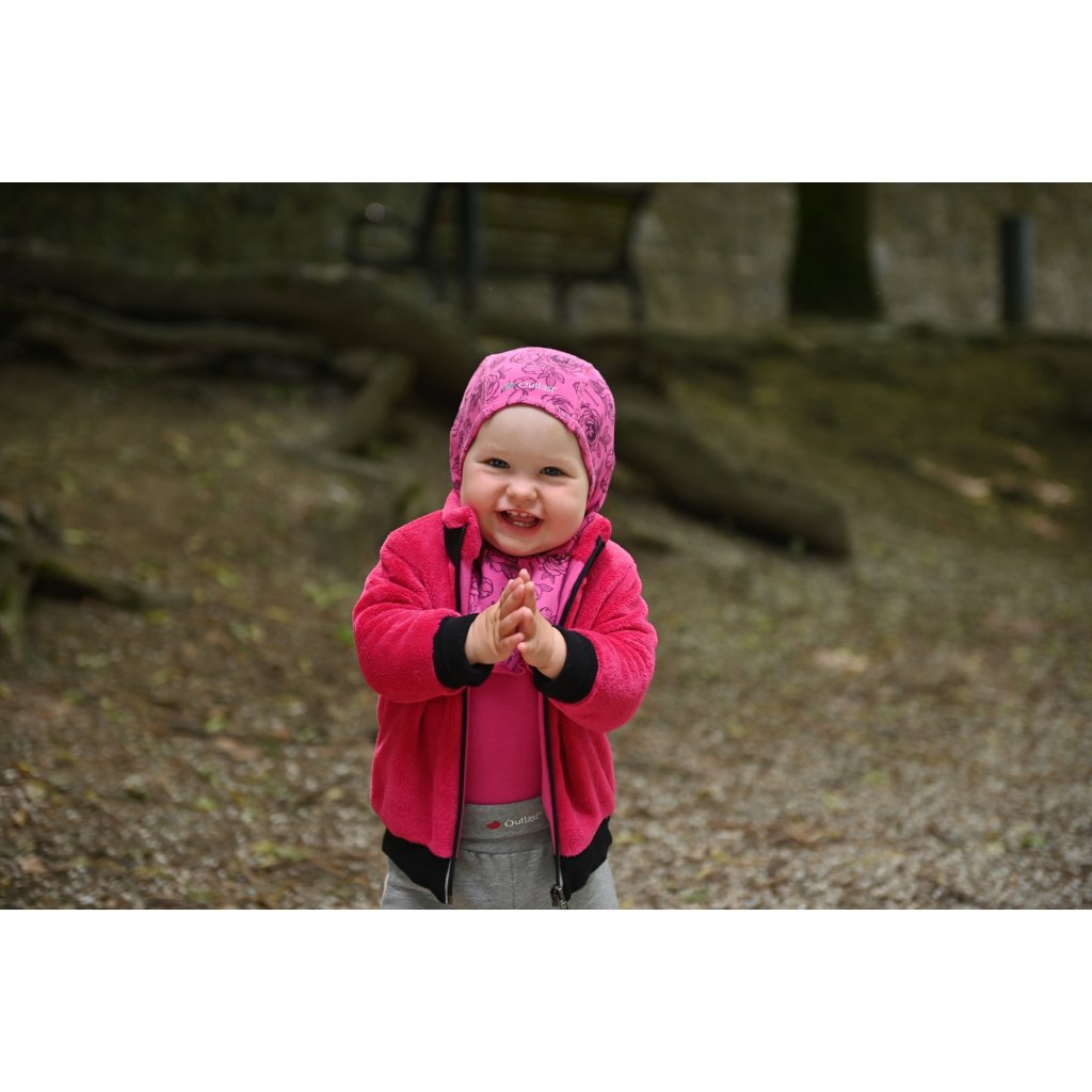 Die Schlupfmütze aus bedrucktem Baumwolljersey mit Outlast®-Material mit Maschen ist weich, elastisch und sehr angenehm im Griff. Sie sitzt gut, schlüpft nicht und steht nirgendwo ab, so schützt richtig den Kopf, die Ohren und den Hals vor Kälte und Wind. Es kann unter oder statt einer Mütze getragen werden. Aber sehr praktisch ist dieses Accessoire auch unter Helm. Das Outlast®-Material sorgt dafür, dass Ihr Kind weniger schwitzt und sich immer wohl fühlt. Vorne ist mit dem Reflex-Logo wegen höherer Sichbarkeit ausgestattet. Bei der Produktion dieser Mütze haben wir die dickere Variante des Outlasts mit Maschen-Outlast genutzt, der auf Rechtsseite glatt ist und auf der Linksseite mit weichen Maschen ausgestattet ist. Man kann dieses Kleidungsstück einfach mit anderen Produkten kombinieren. Es passt für Mädchen und Jungen gleichermaßen.