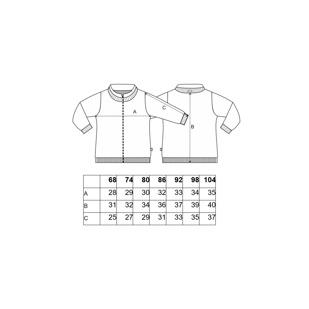 - In den Größen 80 bis 104