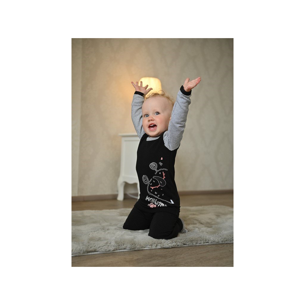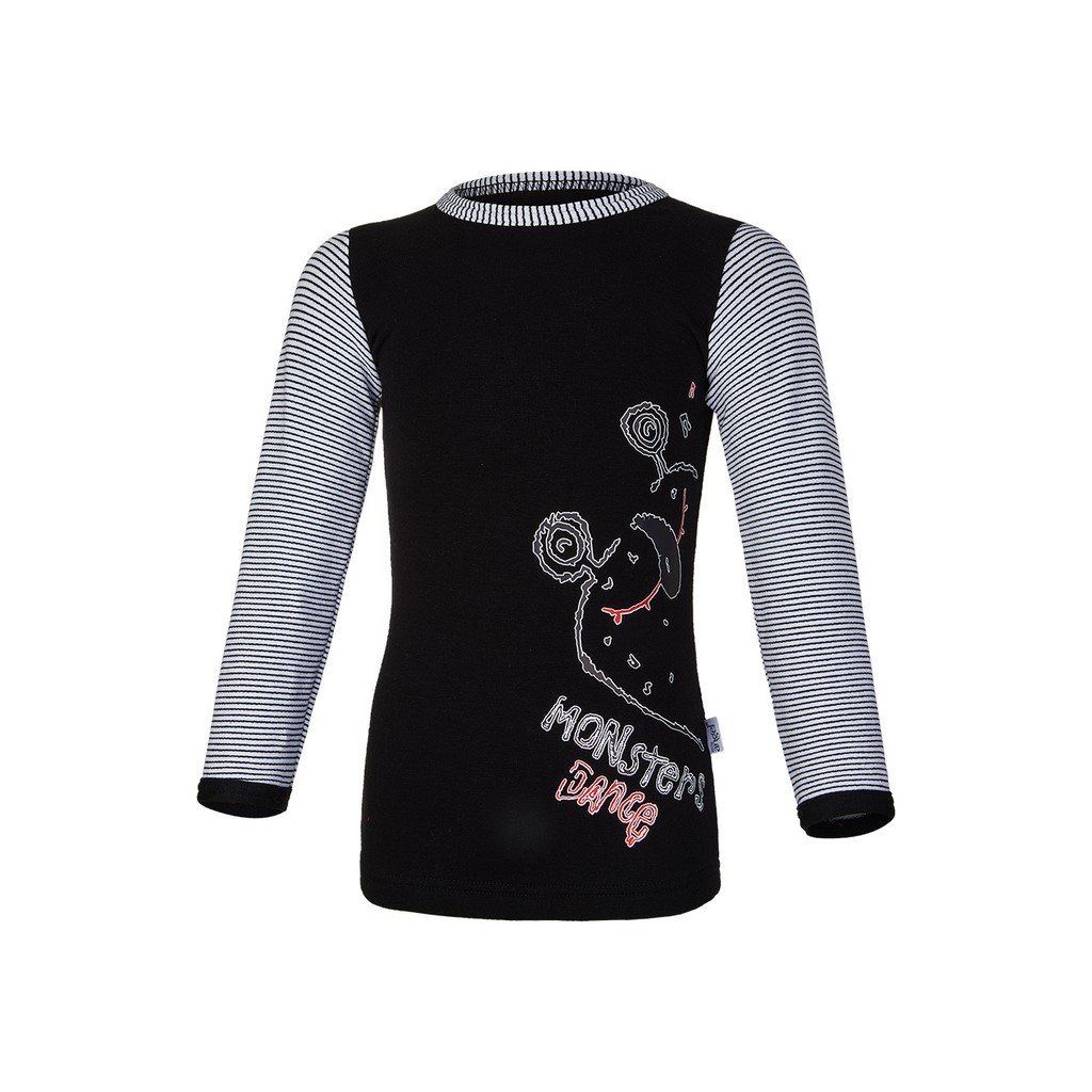 T-Shirt langer Ärmel MONSTERS Outlast® - schwarz/Streifen weissschwarz