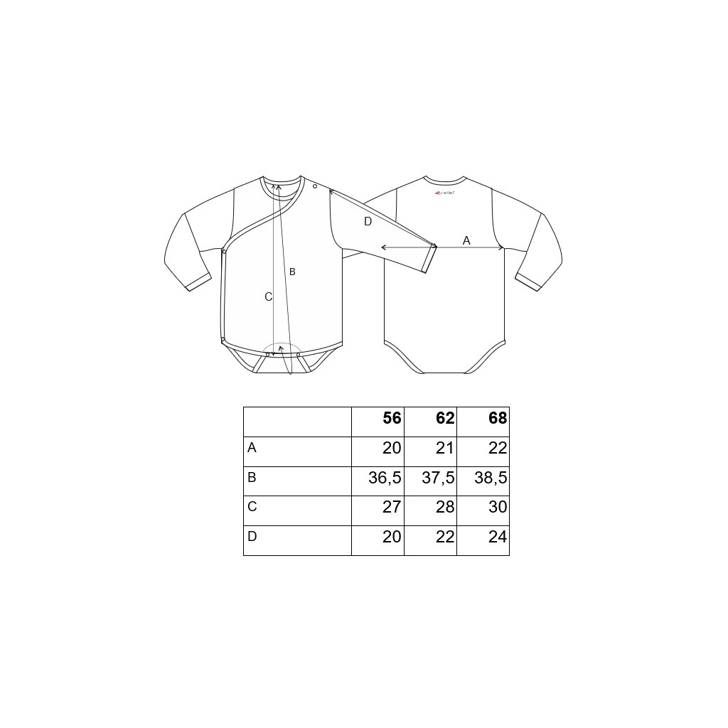 Das Material ist sehr elastisch und fühlt sich angenehm an. Darüber hinaus ist es auch für Kinder mit problematischer Haut geeignet, egal ob sie allergisch sind oder ein atopisches Ekzem haben. Es verursacht keine allergischen Reaktionen und ist resistent gegen Schimmel und Bakterien. Es verringert das Risiko von Frieseln. Dieser Body ruft ein Gefühl des Wohlbefindens hervor.